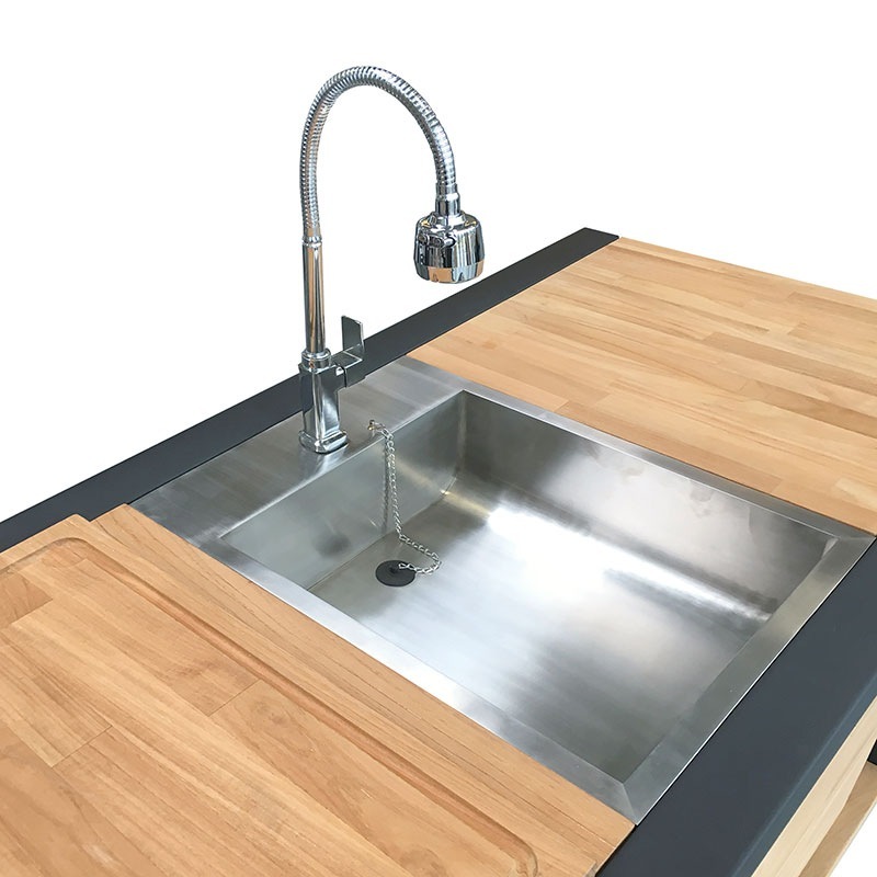 Mit Arbeitsplatte-Einsatz in Teak oder Granit
